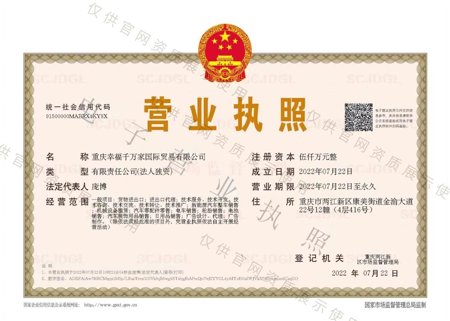 经中国国务院商务部备案的二手车出口试点企业, 重庆市五家二手车出口试点企业之一,由全球500强吉利控股集团布局成立, 重庆幸福千万家科技有限公司全资子公司,总部位于中国重庆。 聚焦新能源二手车及零配件出口业务。